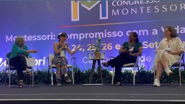 O congresso se encerrou com a roda de conversa “Da teoria à prática: caminhos para uma educação que transforma vidas”, com a presença de Márcia Fatureto (Escola Montessori de Brasília/DF), Mariaurea Branco Albuquerque (Colégio Céu Azul Montessori – Petrópolis/RJ e Comissão Científica da OMB), Vanessa da Silva Santos (Colégio Novo Alicerce/SP e Diretora Secretária da OMB) e mediação de Gabriel Salomão (Lar Montessori e Comissão Científica da OMB).