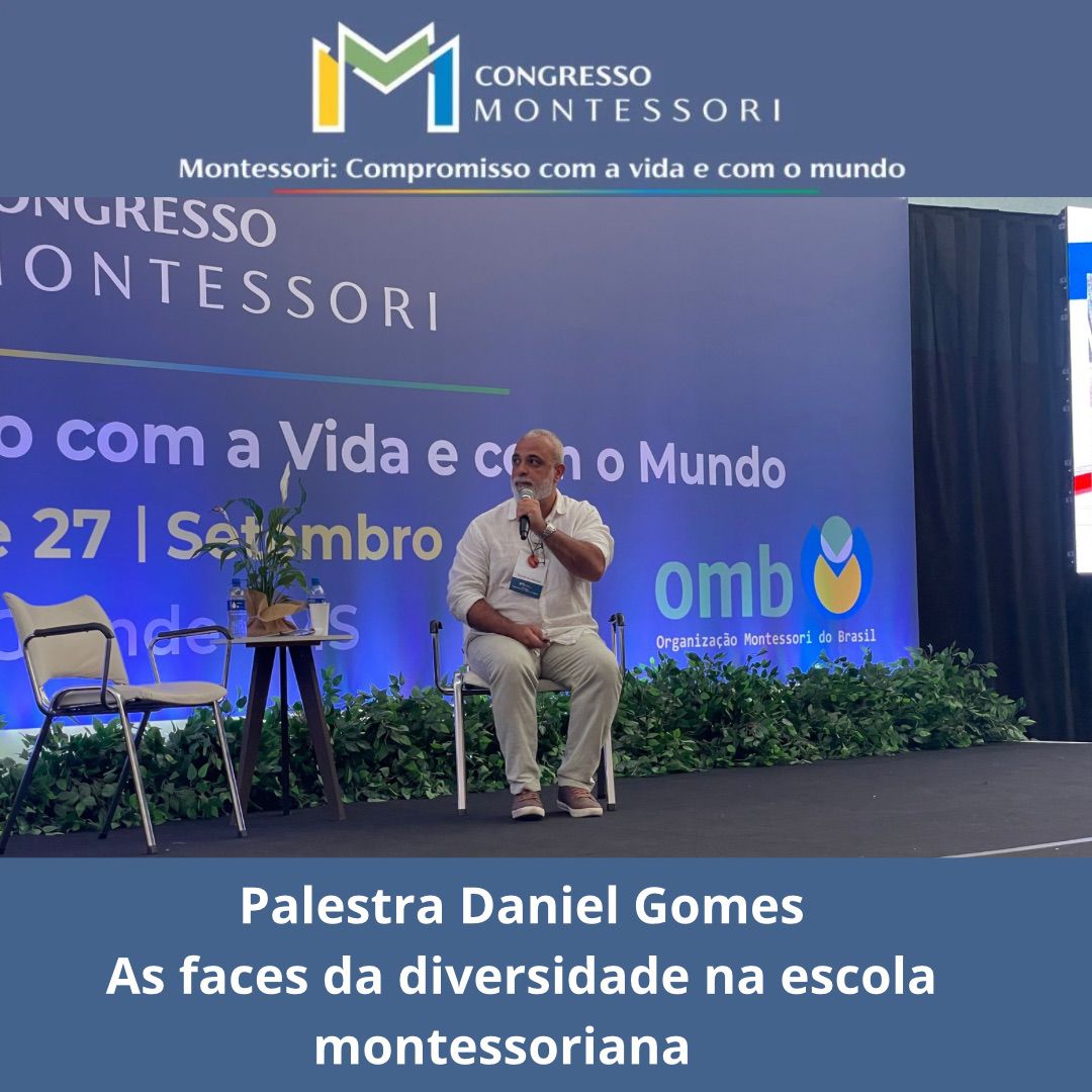 A manhã seguiu com Edimara de Lima e Andréa Costa, que nos trouxeram reflexões sobre a autoria no processo de aprendizagem. Em seguida, Daniel Gomes nos conduziu a pensar as múltiplas faces da diversidade na escola montessoriana.