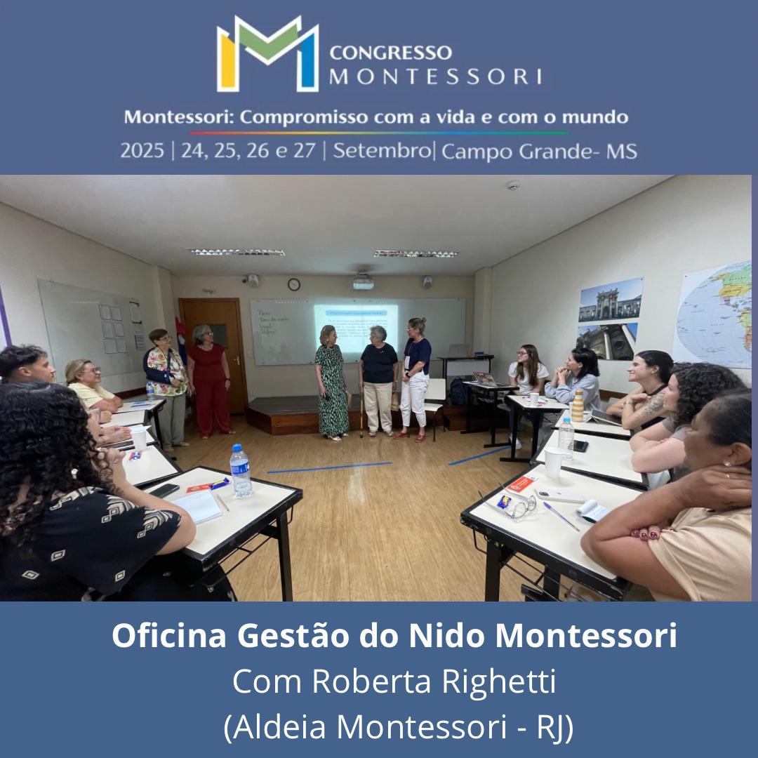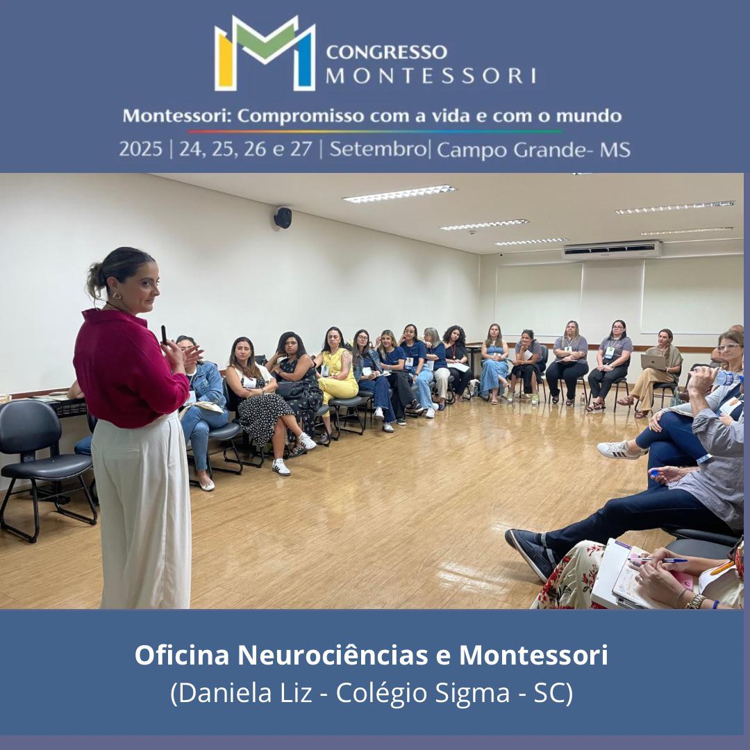 Após o almoço, chegaram as tão esperadas oficinas práticas, conduzidas por especialistas em Montessori. Foram momentos ricos de troca, com múltiplas áreas exploradas e possibilidades para enriquecer ainda mais a prática educativa.